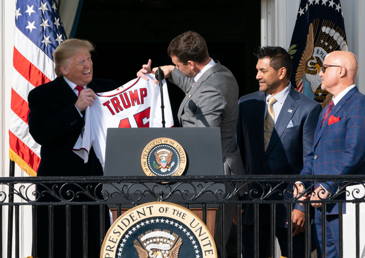 Президент США Дональд Трамп принял в Белом доме бейсбольную команду «Вашингтон Нэшионалс», одержавшую победу в Мировой серии. Во время встречи со спортсменами американский лидер предложил некоторым из них выступить перед собравшимися.