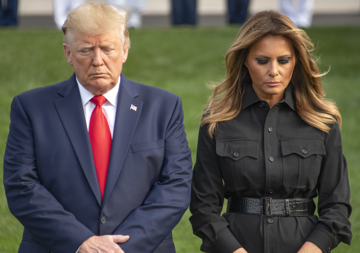 Американский лидер и первая леди вышли к людям, собравшимся на лужайке у Белого дома. После минуты молчания Трамп отправился в Пентагон, где выступил с речью в память о жертвах трагедии.