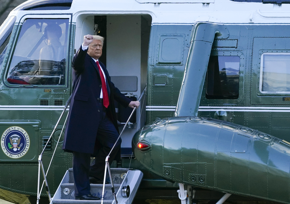 45-й президент США выразил отдельную благодарность вице-президенту Майку Пенсу, подчеркнув, что они отлично поработали вместе. Перед отлётом из Вашингтона во Флориду он пожал руку бывшему главе аппарата Белого дома Марку Мидоусу, вместе с членами семьи прошёл вдоль линейки почётного караула и поднялся на борт президентского самолёта.