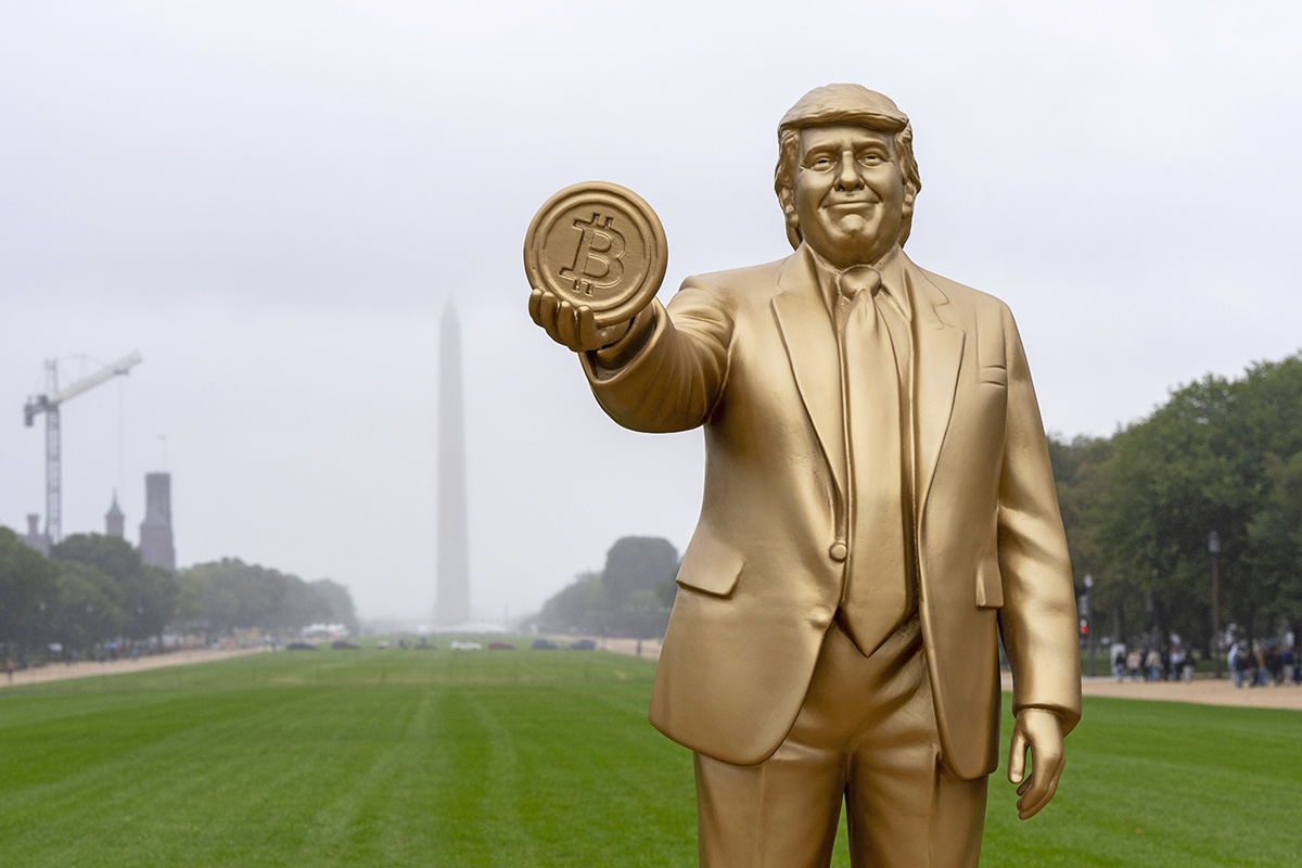 В центре Вашингтона напротив здания Капитолия установили четырехметровую золотую статую президента США Дональда Трампа, сообщает телеканал ABC 7. Глава Белого дома держит в руках биткоин. Известно, что проект профинансировали инвесторы.