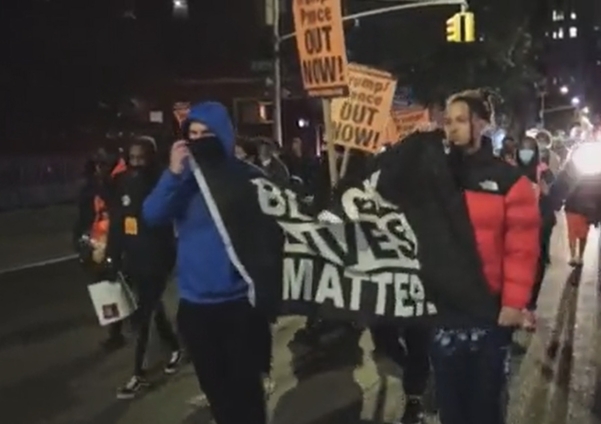 На улицы вышло несколько десятков человек. Они заявляют о необходимости отставки Трампа и вице-президента Майка Пенса. Как сообщает РИА Новости, они кричат: «К чёрту Трампа!», «Трамп крадёт наши выборы» и другие речёвки в адрес действующего президента. У некоторых участников акции в руках транспаранты с надписью Black lives matter.