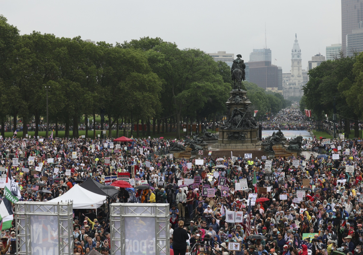 Участники начали шествие до Художественного музея Филадельфии, рядом с которым должны выступить активисты. При этом граждане скандируют «вот так выглядит демократия» и «Трамп, уходи!». Акция проходит мирно, полиция никого не задерживает.
