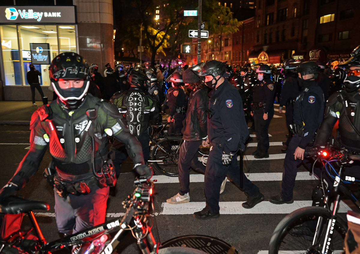 Жители Нью-Йорка продолжают выступать с акциями протеста на улицах города. СМИ вновь отмечают столкновения демонстрантов с полицией и сообщают о большом числе арестованных.