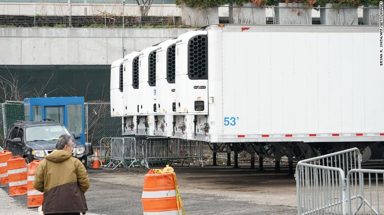 Рефрижераторы для хранения тел умерших сигнализируют об историческом испытании, вызванном кризисом в области здравоохранения, отмечает CNN.
