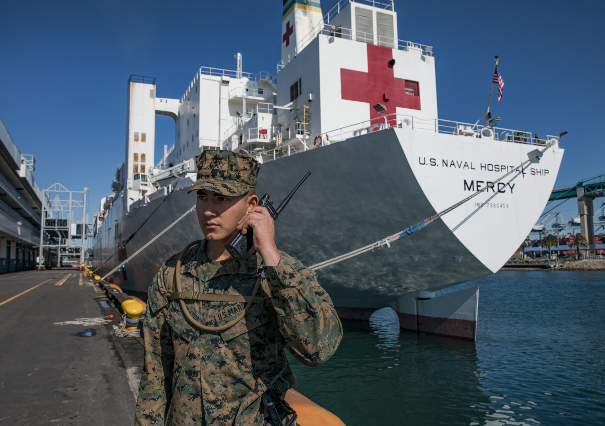 Член экипажа плавучего госпиталя USNS Mercy ВМС США сдал тест на коронавирус, который дал положительный результат. Судно пришвартовано в порту Сан-Педро в Лос-Анджелесе.