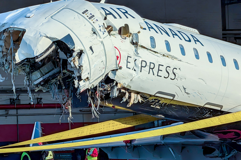 Момент жесткого столкновения самолета Air Canada с пожарной машиной в аэропорту Нью-Йорка попал на видео. В результате аварии погибли оба пилота, более 40 пассажиров получили ранения. На кадрах видно, как борт врезался в транспорт во время разгона на взлетно-посадочной полосе в аэропорту Ла-Гуардия. При столкновении самолет «поднялся на дыбы», а передняя часть оказалась разворочена от удара с авто.