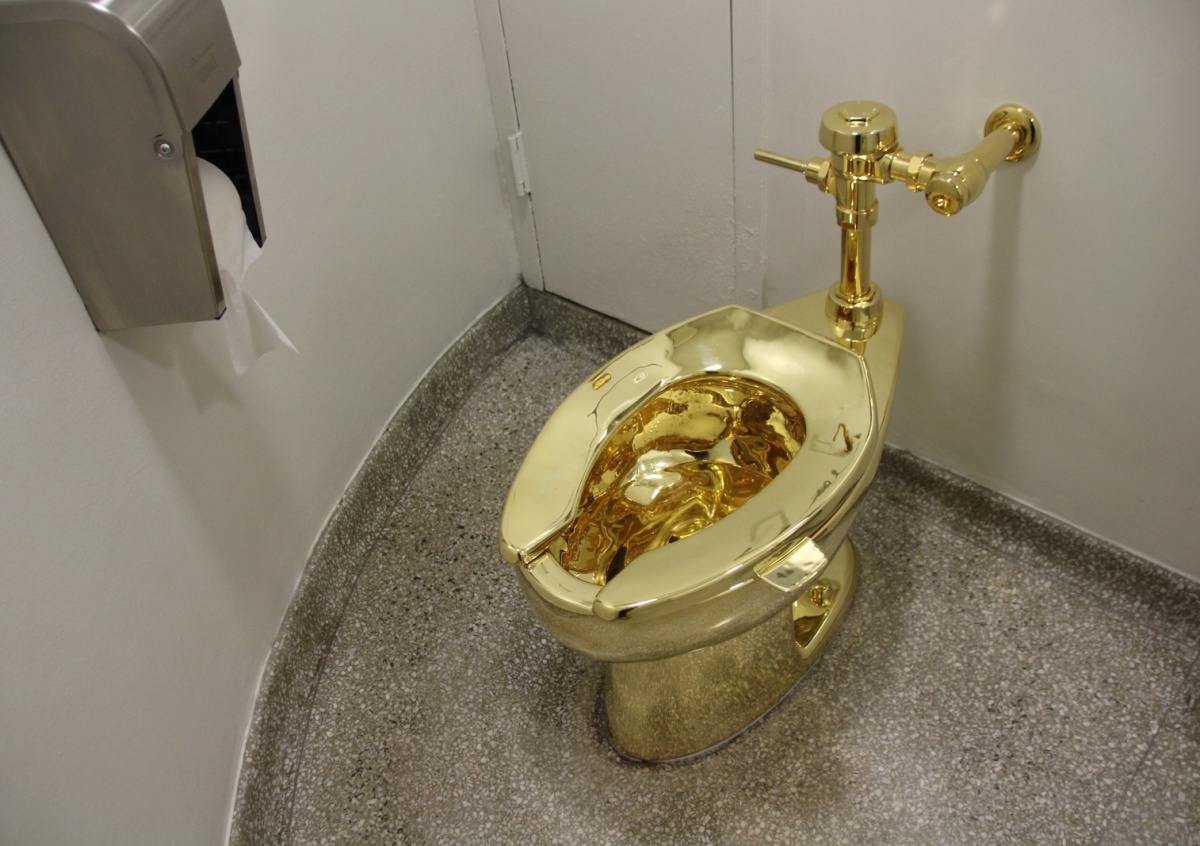 Золотой унитаз выставили на торги за миллионы долларов в США