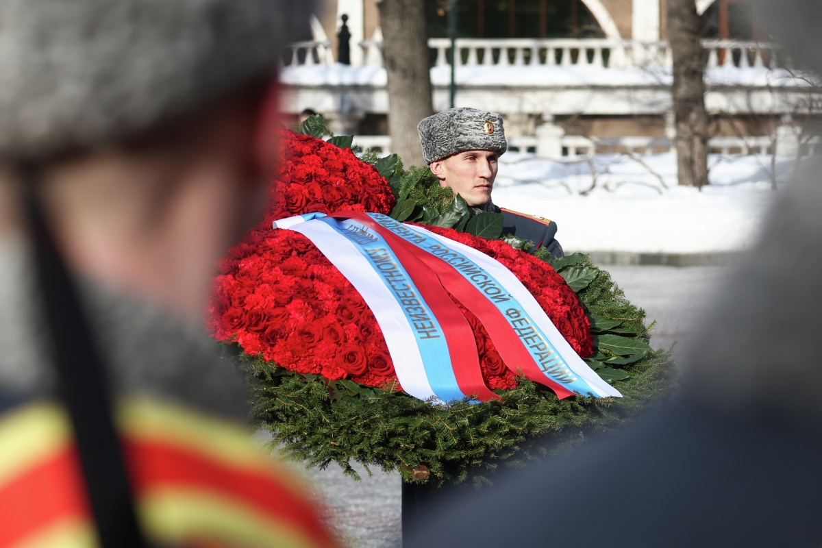 До этого президент России Владимир Путин возложил траурный венок к Могиле Неизвестного Солдата у стен Кремля. Под звуки военного оркестра почетный караул установил у Вечного огня венок из алых роз с лентами в цветах российского триколора. Глава государства почтил память павших воинов минутой молчания.
