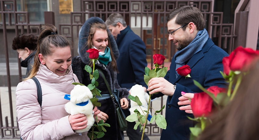 Депутаты Госдумы вышли на улицы, чтобы подарить женщинам цветы и плюшевые игрушки. Об этом сообщает пресс-служба «Единой России».