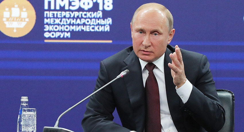Президент РФ Владимир Путин выступает на пленарном заседании Петербургского международного экономического форума — 2018