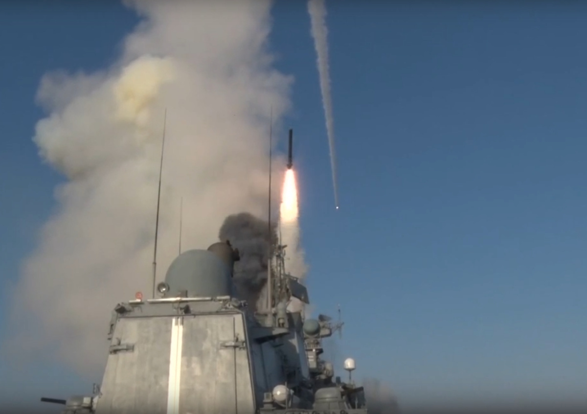 МО России показало кадры запуска четырех ракет «Калибр» по объектам ВСУ