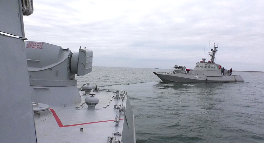 В сообщении ФСБ РФ подчёркивается, что ВМС Украины в ходе инцидента в Черном море расчехлили артустановки, подняли стволы на 45 градусов и направили их в сторону кораблей и катеров РФ. Российская сторона в ответ предупредила, что расценит угрозу применения оружия как нарушение международного права.