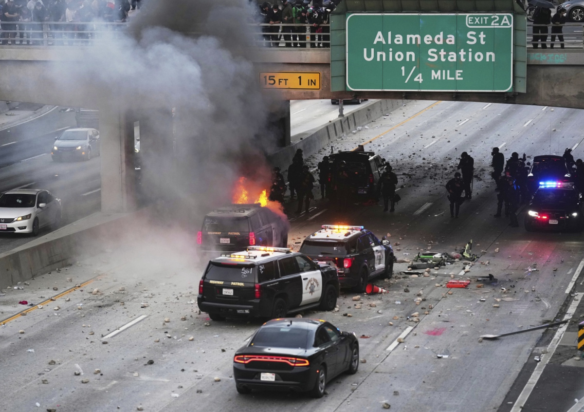 Беспорядки в Калифорнии являются гражданской войной, заявил в своем Telegram-канале российский сенатор Алексей Пушков. Также он опубликовал снимок с протестующими и горящими автомобилями на улицах города.