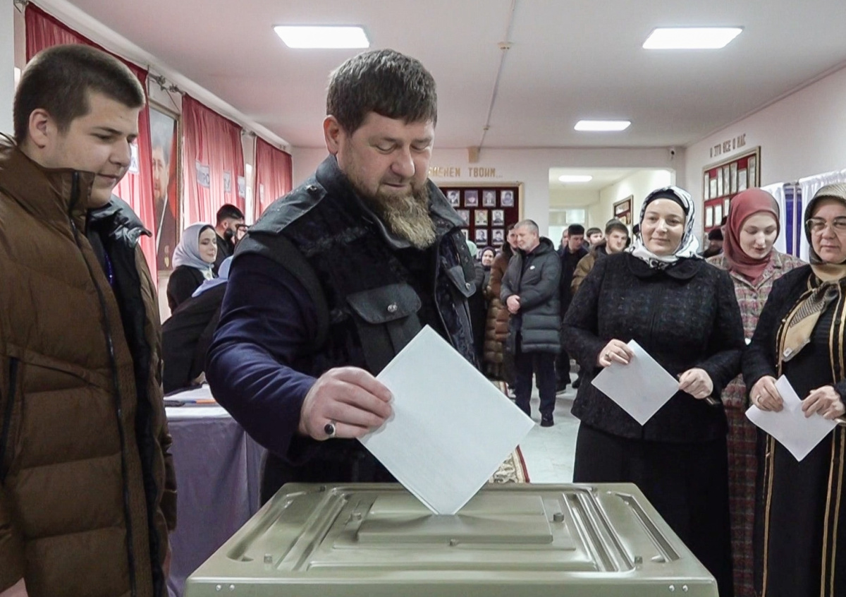 Глава Чечни Рамзан Кадыров во время голосования на выборах президента России на избирательном участке Глава Чечни Рамзан Кадыров во время голосования на выборах президента России на избирательном участке Фото: Пресс-служба главы и правительства Чечни/ТАСС