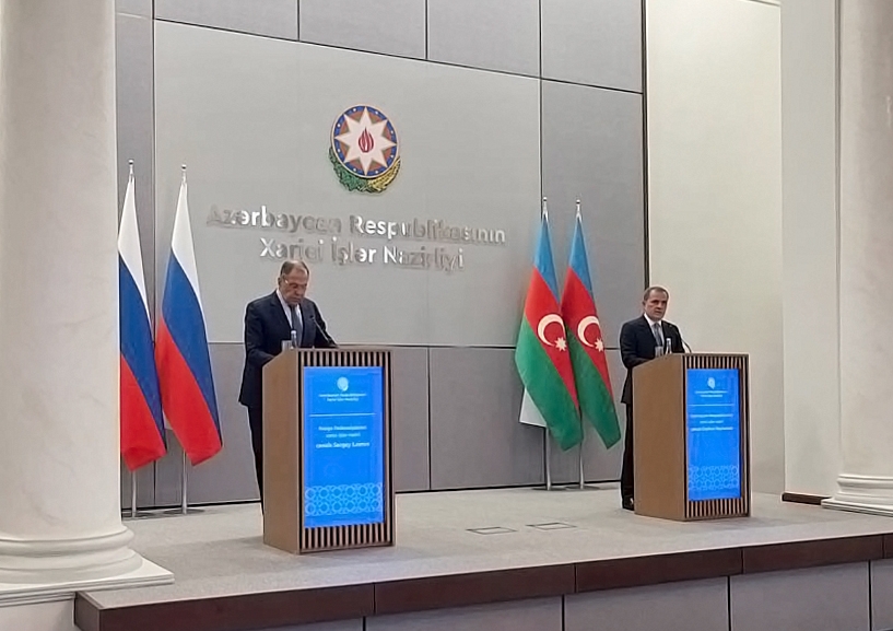 Сергей Лавров на пресс-конференции по итогам встречи с азербайджанским коллегой Джейхуном Байрамовым Сергей Лавров на пресс-конференции по итогам встречи с азербайджанским коллегой Джейхуном Байрамовым Фото: Сона Рустамова/NEWS.ru