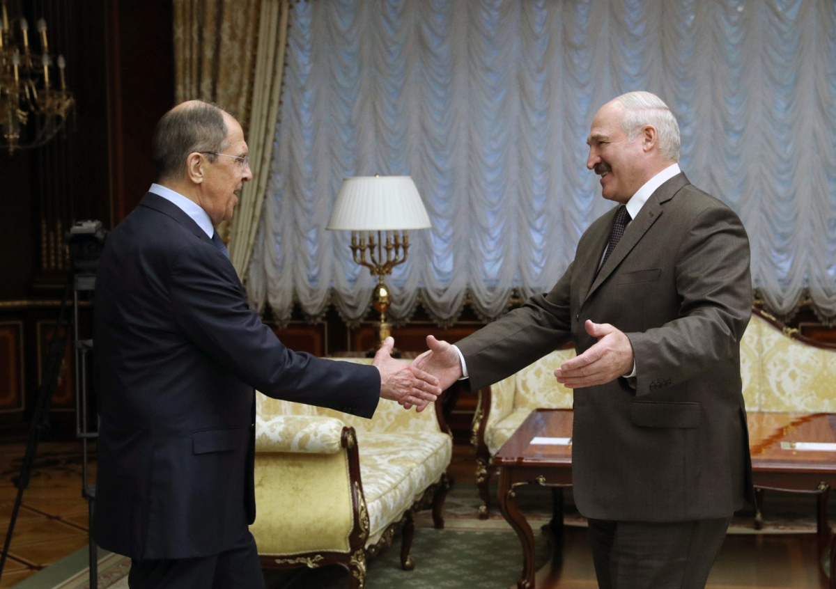 Министр иностранных дел России Сергей Лавров и президент Белоруссии Александр Лукашенко (слева направо) Министр иностранных дел России Сергей Лавров и президент Белоруссии Александр Лукашенко (слева направо) Фото: Максим Гучек/БелТА/ТАСС