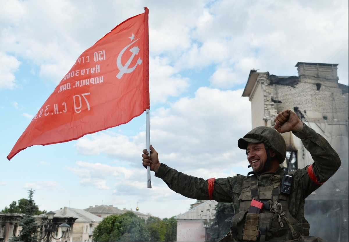 Установка Знамени Победы на здании администрации Лисичанска Установка Знамени Победы на здании администрации Лисичанска Фото: Виктор Антонюк/РИА Новости