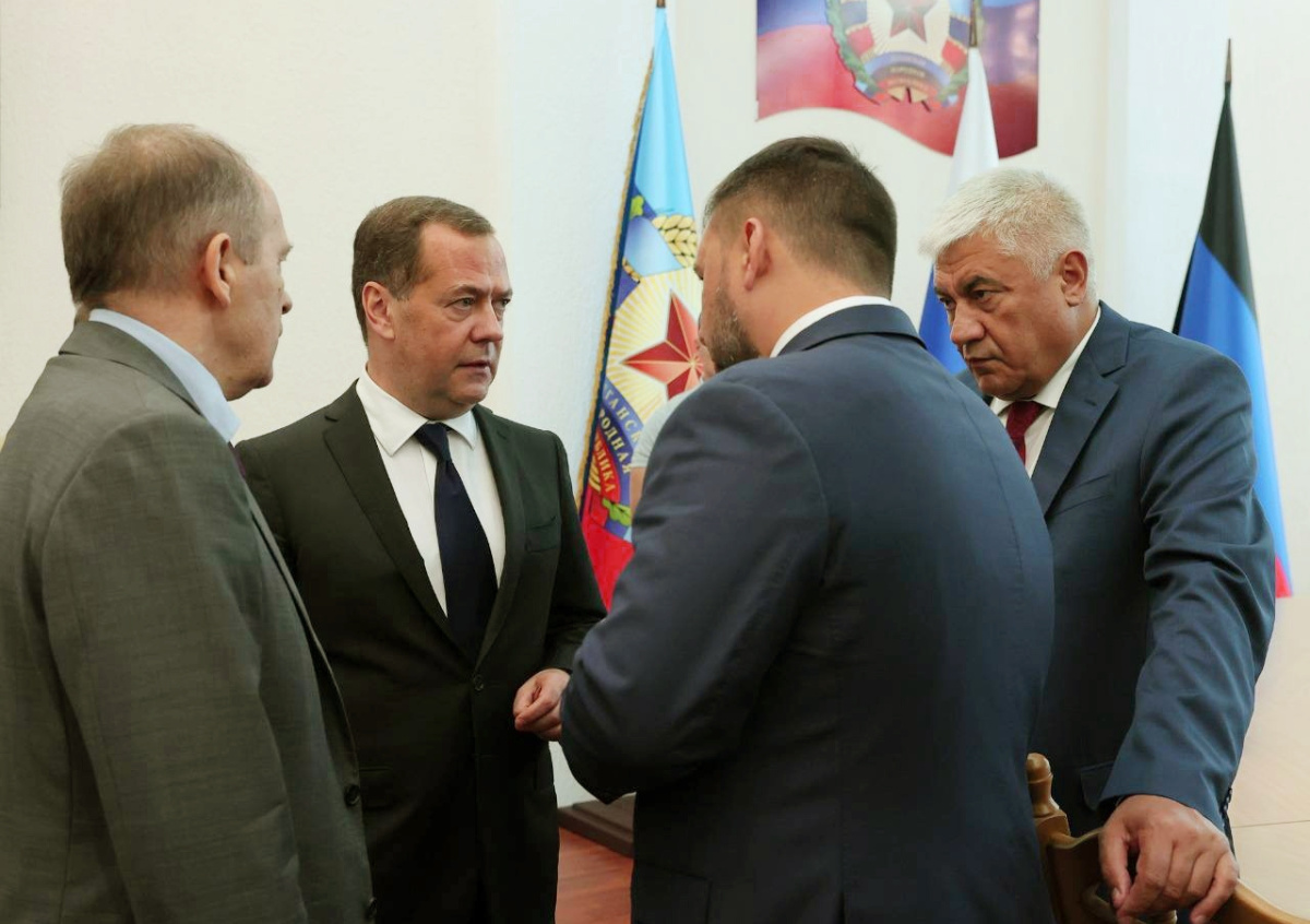 В четверг посетил Луганскую Народную Республику, где встретился с главами ЛНР Леонидом Пасечником и ДНР Денисом Пушилиным. По поручению президента РФ провёл совещание, посвящённое первоочередным мерам обеспечения безопасности республик Донбасса, — сообщил Медведев.