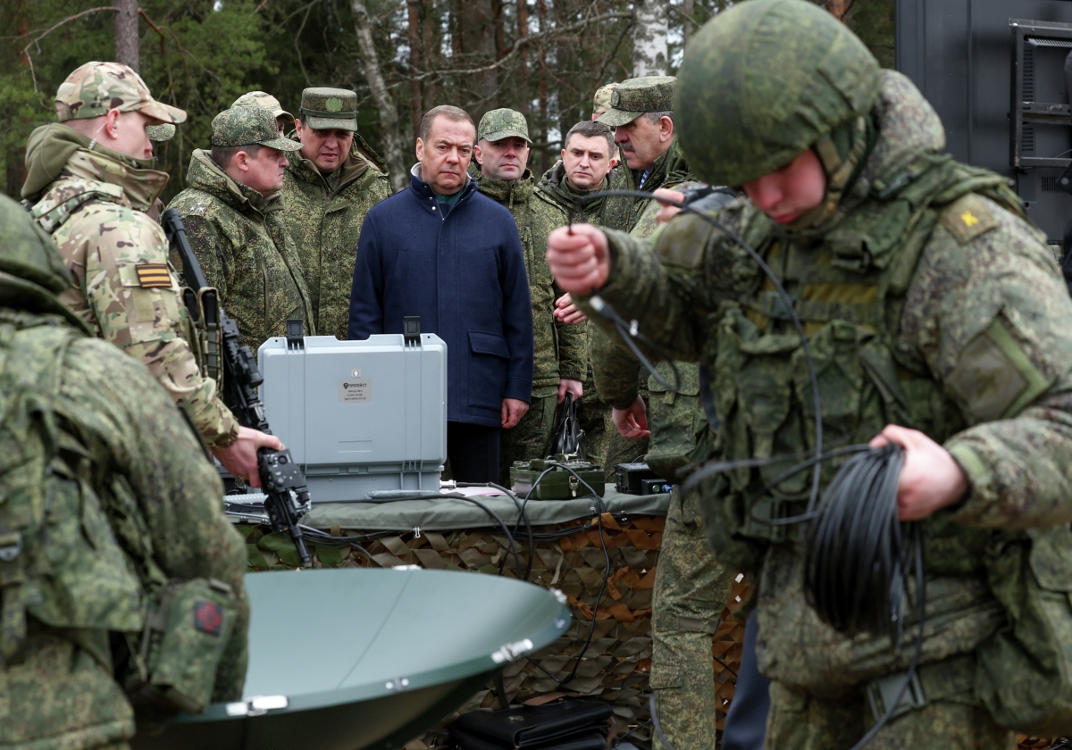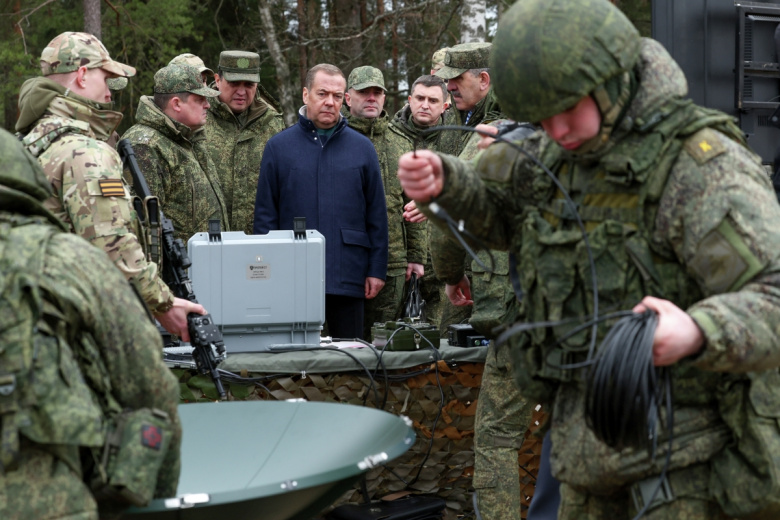 Зампредседателя Совбеза РФ Дмитрий Медведев рассказал в мессенджере МАКС, что побывал в учебном центре Ленинградского военного округа. Он опубликовал кадры, на которых осматривает технику, а также беседует с военными.