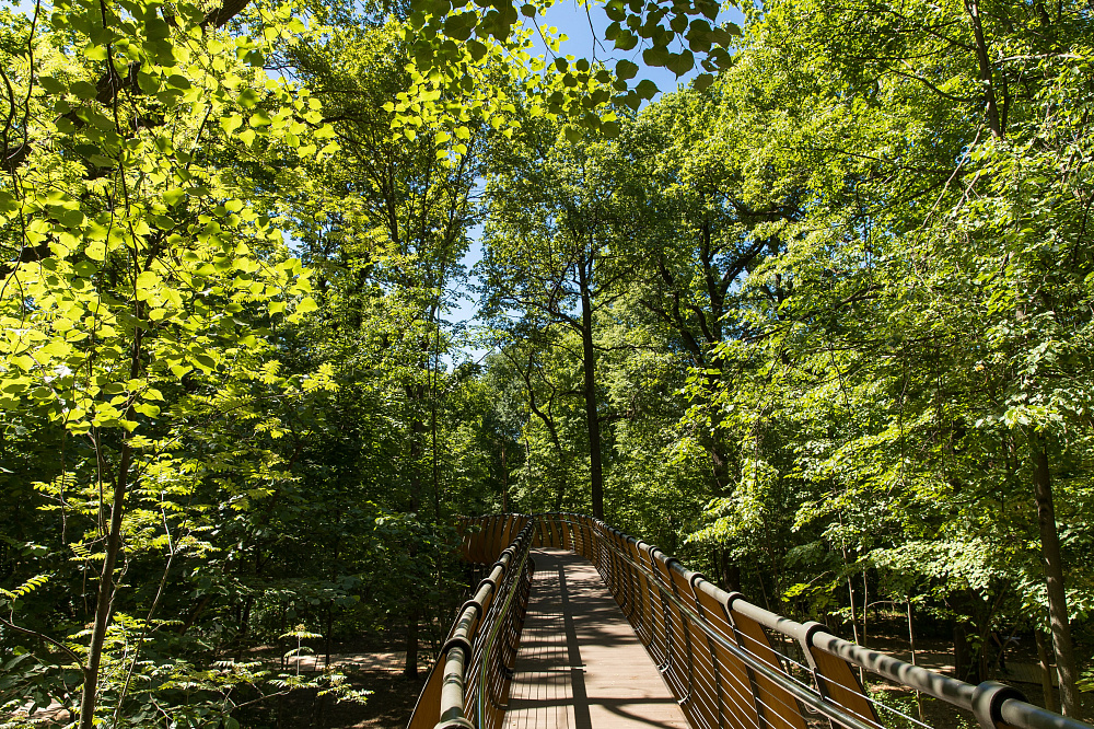 Так, например, на ВДНХ разбили грандиозный ландшафтный парк. Здесь можно найти растения смешанного леса, луга и пресноводного пространства, побывать в живом лабиринте и пройти по воздушной экотропе длиной примерно 500 метров и высотой около шести метров над землёй.