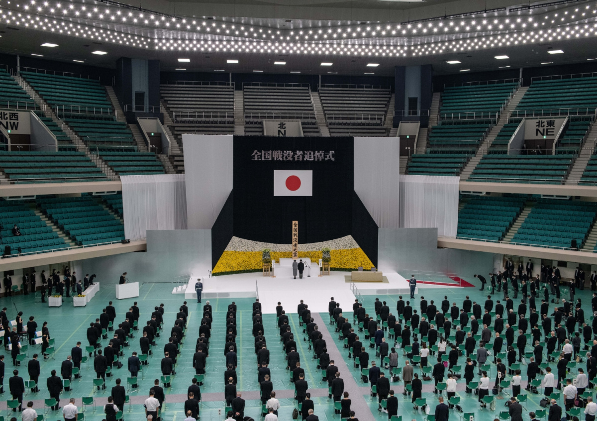 Император Японии Нарухито (слева) и императрица Масако (справа) в масках на лицах посещают поминальную службу, посвященную годовщине капитуляции Японии во Второй мировой войне. Архивное фото Император Японии Нарухито (слева) и императрица Масако (справа) в масках на лицах посещают поминальную службу, посвященную годовщине капитуляции Японии во Второй мировой войне. Архивное фото Фото: POOL/Keystone Press Agency/Global Look Press