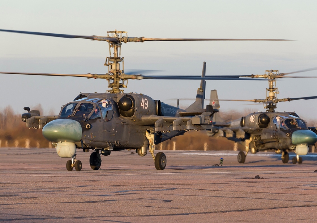В Минобороны уточнили, что экипажи Ка-52 и Ми-28 нанесли удар ракетами по укрепленным пунктам ВСУ. Поражение целей «на отлично» подтвердил позже наводчик.