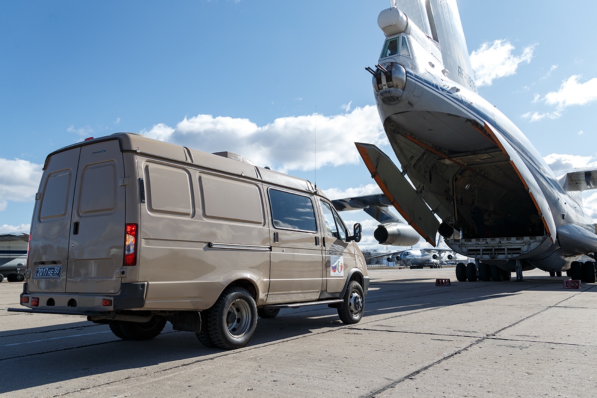 Очередной транспортный самолёт Ил-76 вылетел в охваченную эпидемией коронавируса Италию. Борт доставил в республику российское оборудование и военных специалистов для борьбы с инфекцией.