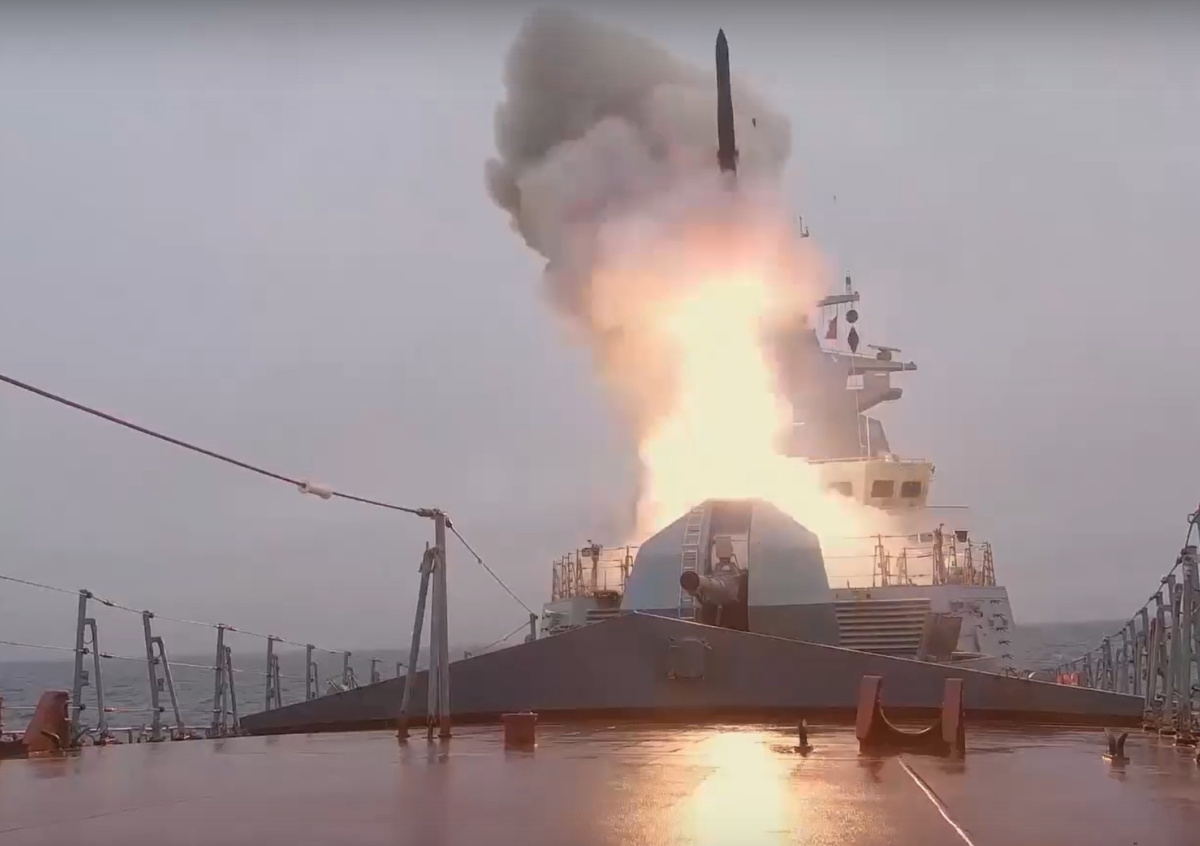 На предоставленных ведомством кадрах можно увидеть пуск ракеты противолодочного комплекса с борта корвета Тихоокеанского флота «Гремящий» по условному противнику в акватории Тихого океана. Также МО показало колонну береговых ракетных комплексов «Бал» Каспийской флотилии на марше.