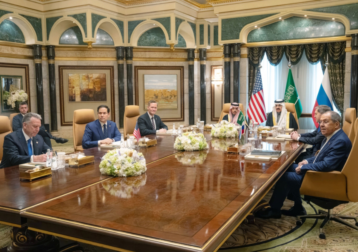 Делегаты США, Саудовской Аравии и России позируют перед началом переговоров Делегаты США, Саудовской Аравии и России позируют перед началом переговоров Фото: Freddie Everett/Us State/Global Look Press