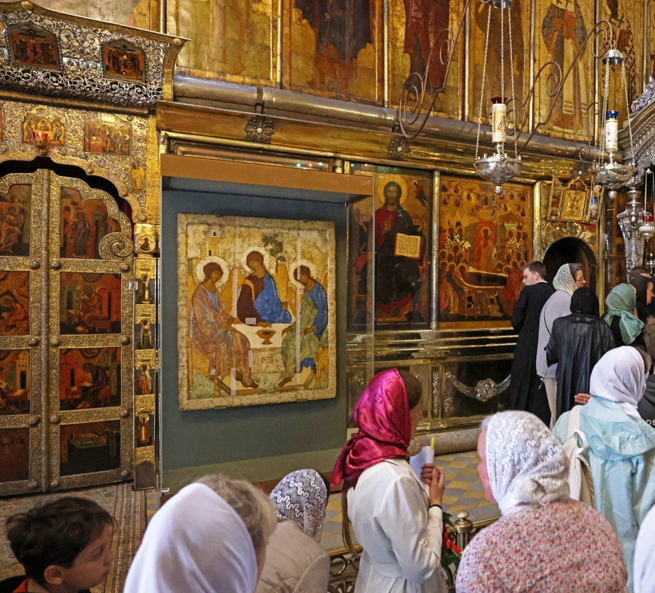 Икона «Троица» по решению президента России Владимира Путина возвращается РПЦ после почти столетнего пребывания в Третьяковской галерее. В течение года она будет выставлена для всеобщего поклонения в храме Христа Спасителя, а затем ее поместят в Троицком соборе. В прошлом году появились сообщения о том, что образ находится под угрозой исчезновения, поскольку специалисты обнаружили на нем свыше 60 изменений.