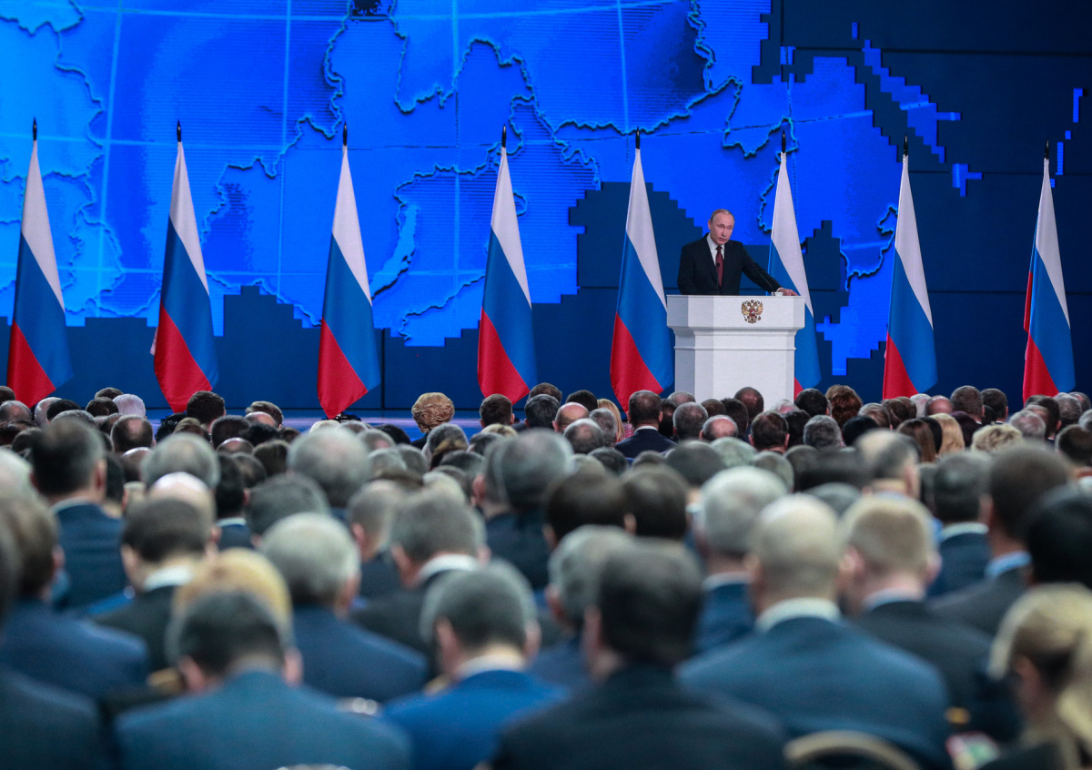 Таким образом представитель Кремля прокомментировал предположения западной прессы, исходя из которых послание Путина готовят в высокотехнологичном секретном помещении на противоположной стороне реки от Белого дома в Москве.
