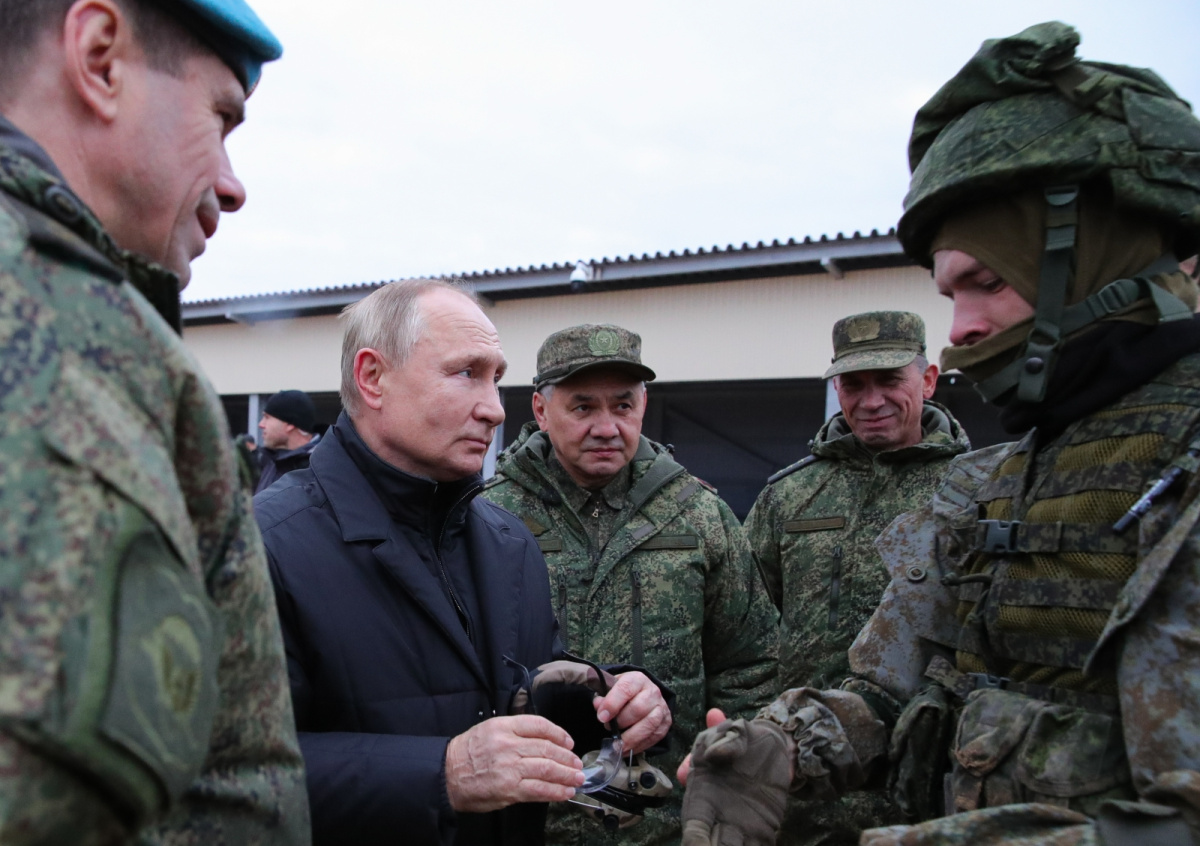 На полигон, где готовят мобилизованных, Путин прибыл вместе с министром обороны, чтобы пообщаться с военными. Президент проинспектировал практические занятия по тактической, огневой, инженерной и медицинской подготовке.