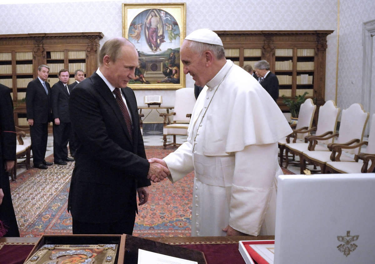 Папа римский Франциск и президент России Владимир Путин во время частной аудиенции в Ватикане Папа римский Франциск и президент России Владимир Путин во время частной аудиенции в Ватикане Фото: Stefano Spaziani/Spaziani/Global Look Press