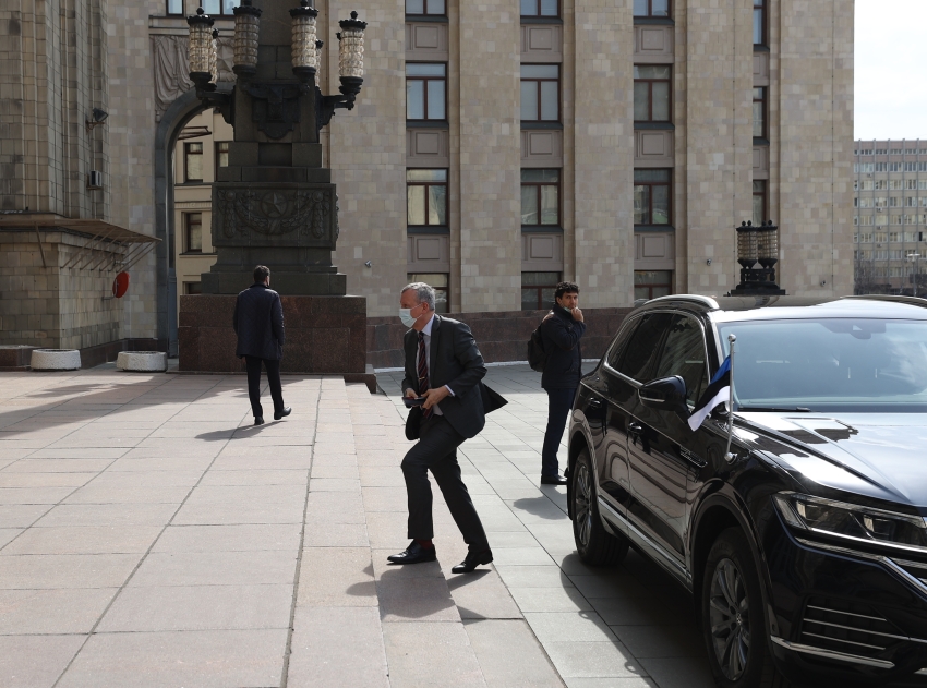 В центральное здание российского Министерства иностранных дел на Смоленской площади прибыл посол Эстонии в Москве Маргус Лайдре. Цель его визита неизвестна.