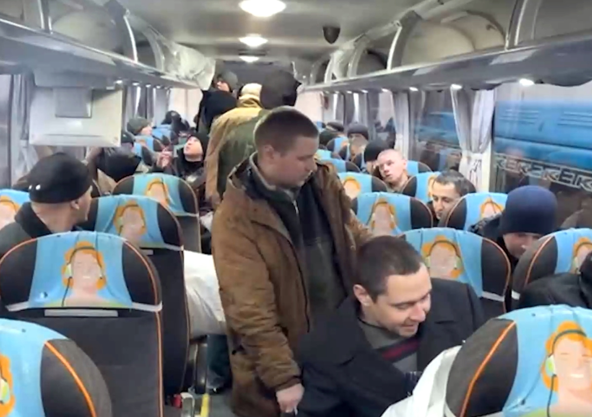 На видео показано, как вернувшиеся из плена военные сидят в автобусе и проходят осмотр у врачей скорой помощи. Бойцам предоставили телефоны, чтобы они могли позвонить домой своим родным. В Минобороны РФ сообщали, что освобожденных военнослужащих доставят в Москву для прохождения лечения.