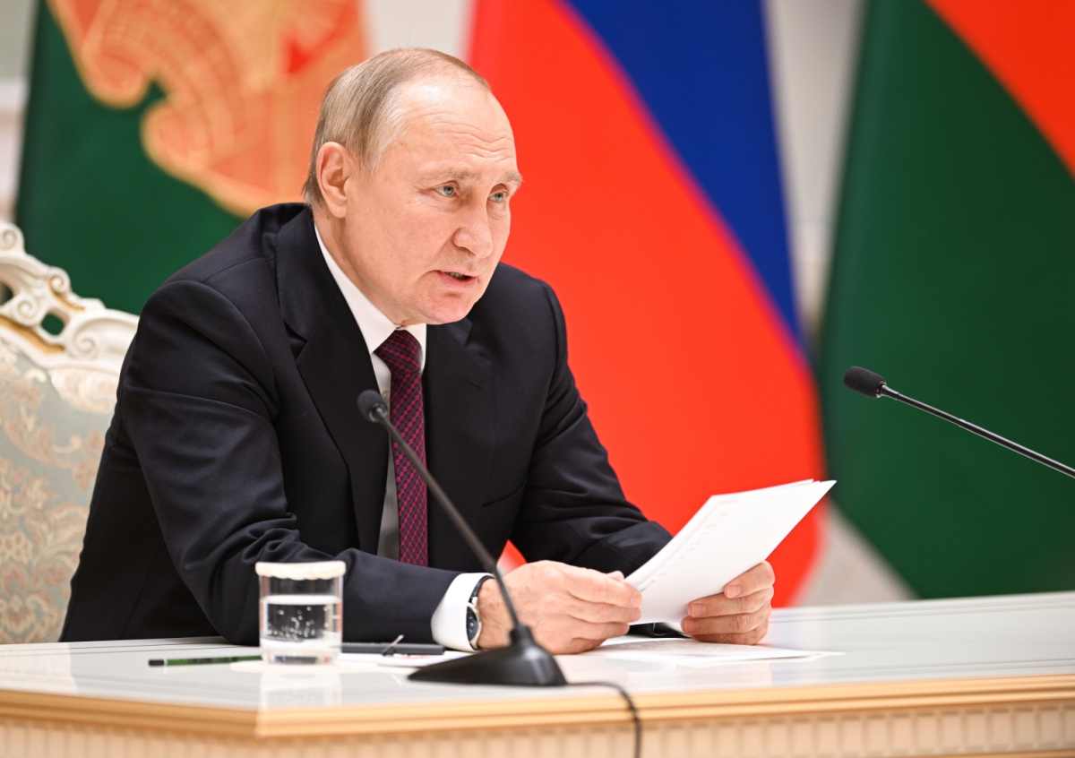 Президент РФ Владимир Путин во время встречи с президентом Белоруссии Александром Лукашенко во Дворце Независимости Президент РФ Владимир Путин во время встречи с президентом Белоруссии Александром Лукашенко во Дворце Независимости Фото: Павел Бедняков/POOL/ТАСС