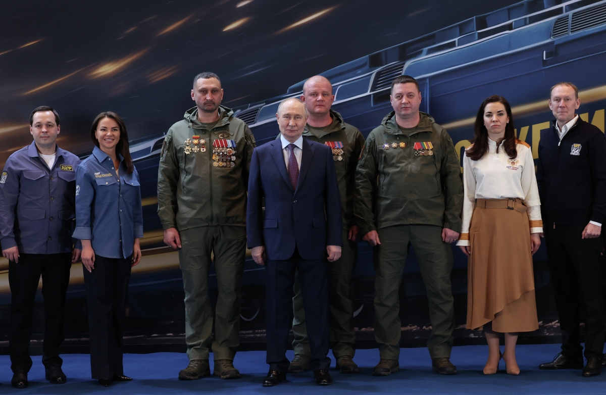 Президент РФ Владимир Путин с представителями добровольческой бригады ‭«Невский» и партии ЛДПР на выставке в ‭«Манеже», посвященной 80-летию со дня рождения политика, основателя ЛДПР Владимира Жириновского Президент РФ Владимир Путин с представителями добровольческой бригады ‭«Невский» и партии ЛДПР на выставке в ‭«Манеже», посвященной 80-летию со дня рождения политика, основателя ЛДПР Владимира Жириновского Фото: Валерий Шарифулин/РИА Новости