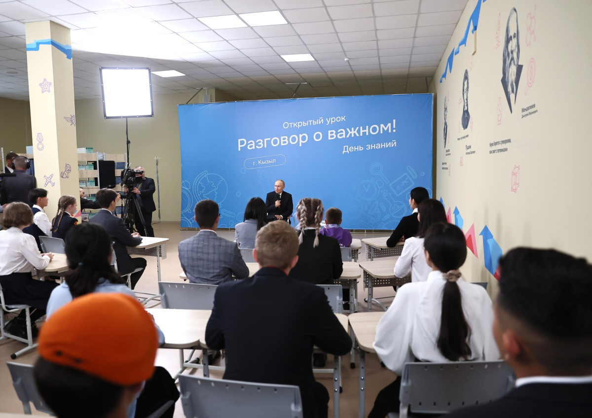Глава РФ прибыл в столицу Республики Тыва 2 сентября. В рамках поездки он посетил новую среднюю общеобразовательную школу № 20 имени Героев Отечества. Здесь он встретился с учащимися. Современное здание образовательного учреждения впечатлило президента.