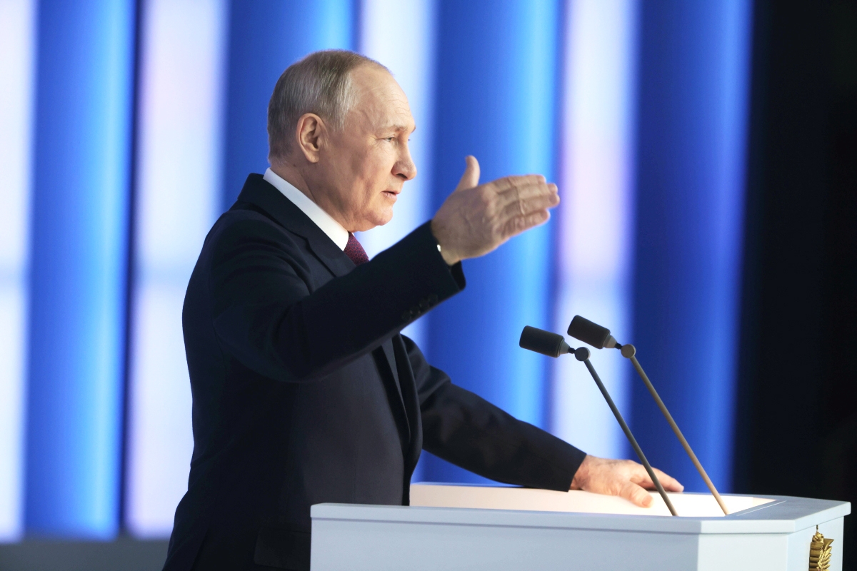 Президент РФ Владимир Путин во время выступления с ежегодным посланием Федеральному собранию РФ в Гостином Дворе Президент РФ Владимир Путин во время выступления с ежегодным посланием Федеральному собранию РФ в Гостином Дворе Фото: Михаил Метцель/POOL/РИА Новости