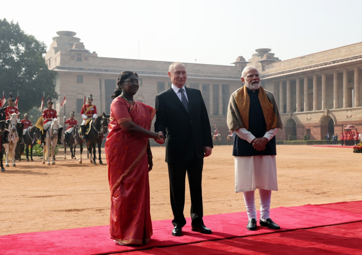 Президент России Владимир Путин начал встречу с индийской коллегой Драупади Мурму, сообщила пресс-служба Кремля, опубликовав соответствующие кадры. Государственный прием по случаю визита главы РФ проходит в Президентском дворце Индии в Нью-Дели.