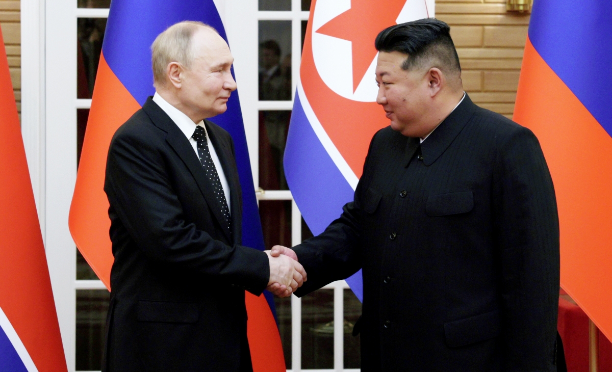Ранее сообщалось, что переговоры президента РФ Владимира Путина и лидера КНДР Ким Чен Ына с участием членов делегаций обеих стран завершились. Их продолжительность составила чуть более полутора часов.