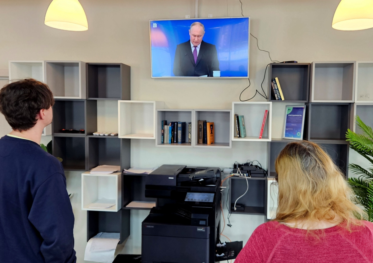 Президент РФ Владимир Путин во время выступления с ежегодным посланием Федеральному собранию РФ Президент РФ Владимир Путин во время выступления с ежегодным посланием Федеральному собранию РФ Фото: Стрингер/NEWS.ru