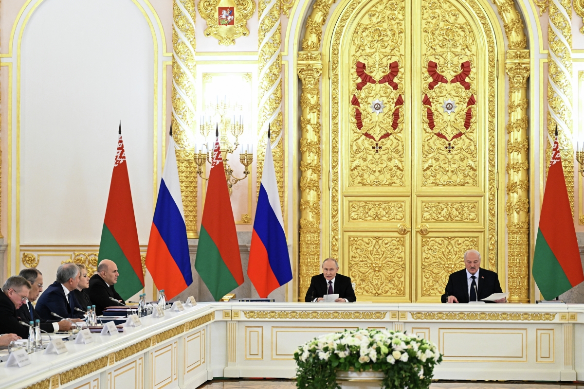 Президент РФ Владимир Путин и президент Белоруссии Александр Лукашенко (справа) на заседании Высшего Государственного Совета Союзного государства Президент РФ Владимир Путин и президент Белоруссии Александр Лукашенко (справа) на заседании Высшего Государственного Совета Союзного государства Фото: Сергей Бобылев/РИА Новости