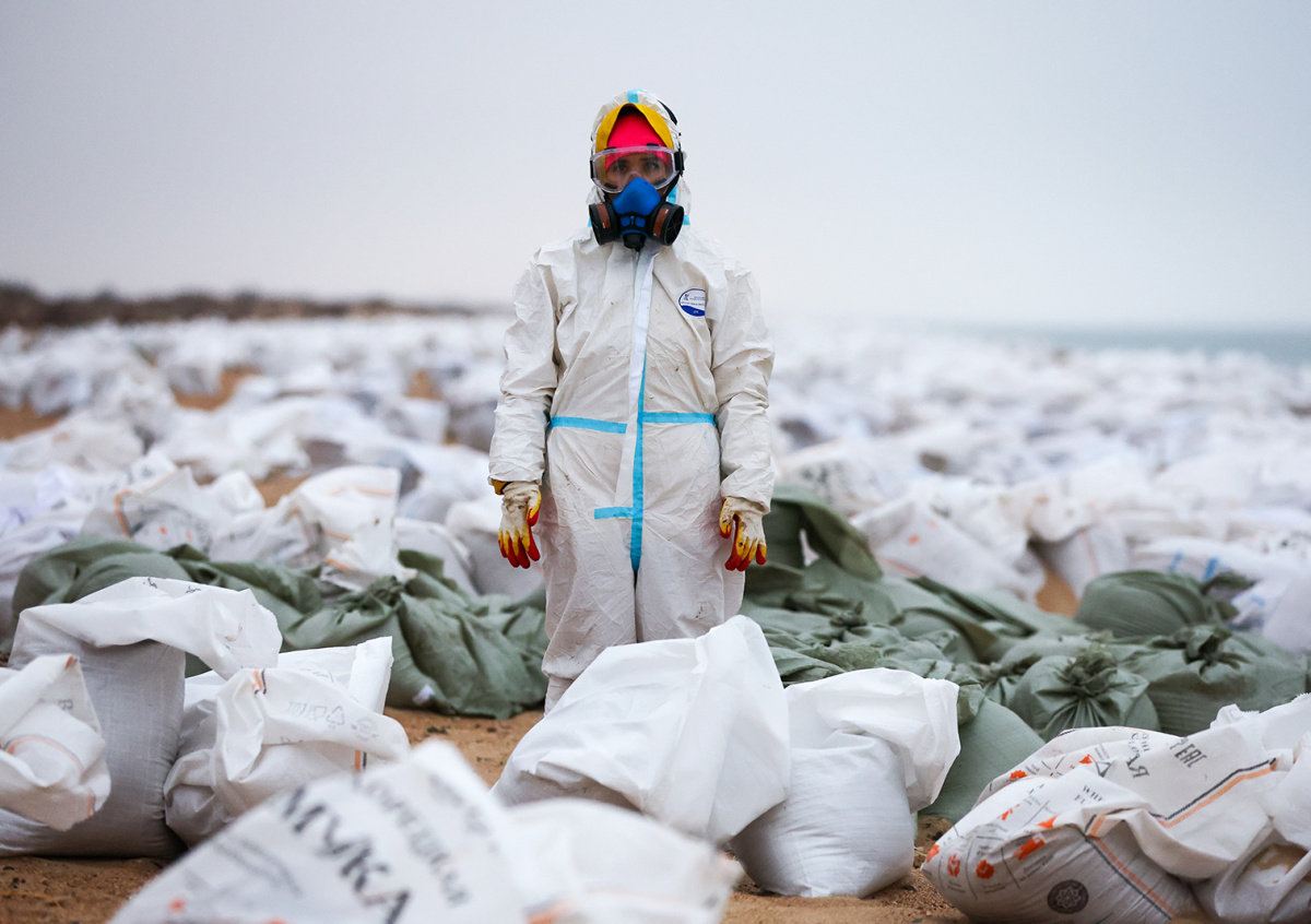 По решению оперштаба собрана группа ученых. Их задача — найти самый эффективный способ очистки песка, загрязненного мазутом, который сейчас вывозят на временную площадку хранения.