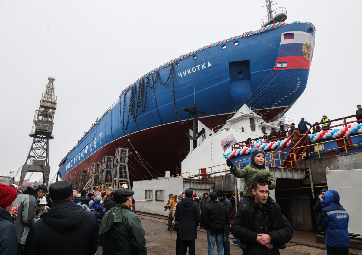 Новый атомный ледокол построили на Балтийском заводе по заказу Росатома. «Чукотка» стала четвертым по счету кораблем в рамках проекта 22220. По словам Владимира Путина, сейчас ведется строительства еще двух судов такого же класса — «Якутия» и «Ленинград». В следующем году будет заложен «Сталинград».