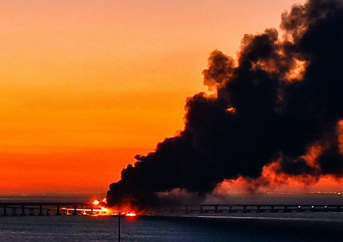 Теракт на Крымском мосту произошел 8 октября 2022 года. По данным Национального антитеррористического комитета РФ, взрывчатка была заложена в рулоны с полиэтиленовой пленкой, которые перевозились грузовым автомобилем. В результате взрыва конструкции моста получили повреждения, загорелось семь цистерн с горючим, которые перевозились по железной дороге.