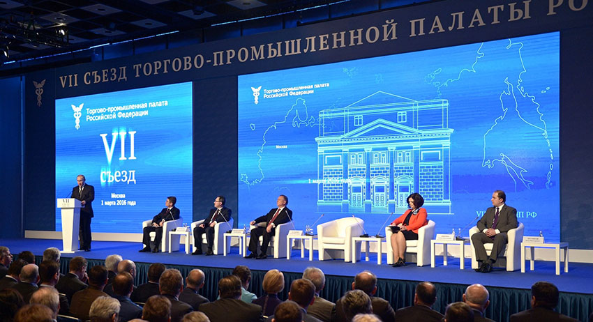 Президент РФ Владимир Путин на VII съезде Торгово-промышленной палаты Президент РФ Владимир Путин на VII съезде Торгово-промышленной палаты Фото: kremlin.ru