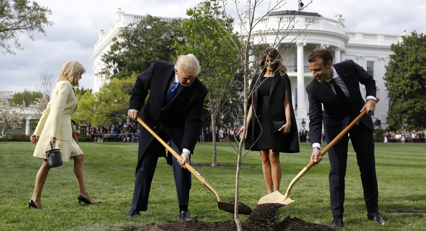 Глава Франции привёз саженец с собой в качестве подарка президенту США. Во время процесса лидеры государств были вместе с первыми леди — Бриджит Макрон и Меланьей Трамп.