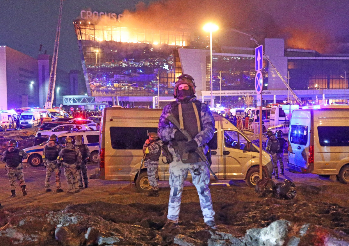 Украина неоднократно отвергала причастность к атаке на посетителей концертного зала. Об этом говорил советник главы офиса президента страны Михаил Подоляк и сам Владимир Зеленский. Той же позиции придерживаются США. Представитель совета национальной безопасности Белого дома Эдриенн Уотсон подчеркнула, что ответственность за атаку несет ИГИЛ (организация признана в РФ террористической, деятельность запрещена).
