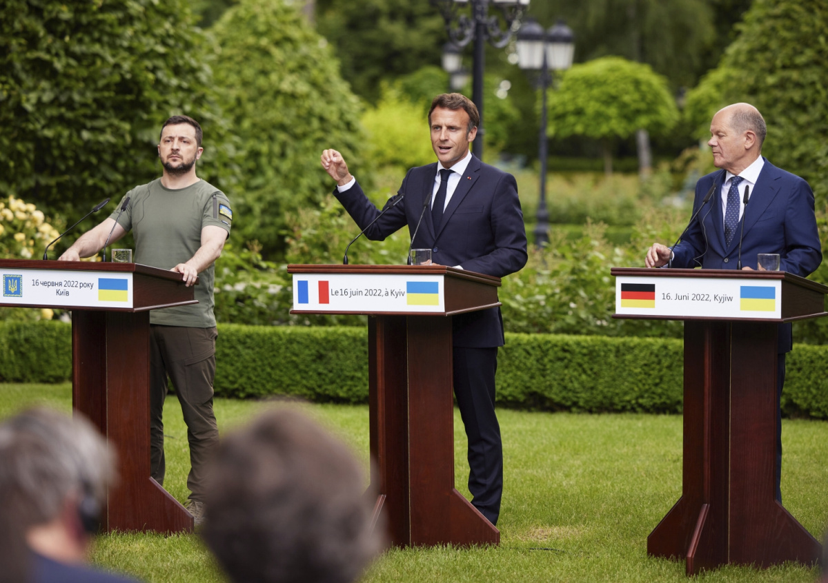16 июля состоялся визит канцлера ФРГ Олафа Шольца, президента Франции Эммануэля Макрона и премьер-министра Марио Драги в Киев. По данным немецкой газеты Die Wel, лидеры трех стран объявили, что поддержат предоставление Украине статуса кандидата в члены Евросоюза, однако «за закрытыми дверями», скорее всего, убеждали Зеленского сесть за стол переговоров с президентом России Владимиром Путиным.